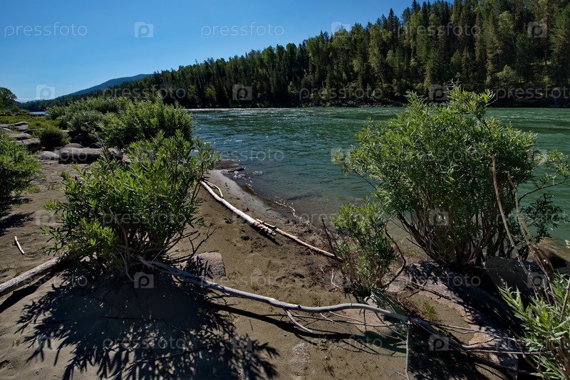 Россия. горный Алтай. Знаменитые «Катунские бани» — одно из самых любимых мест для купания и отдыха жителей Горного Алтая и туристов на реке Катунь