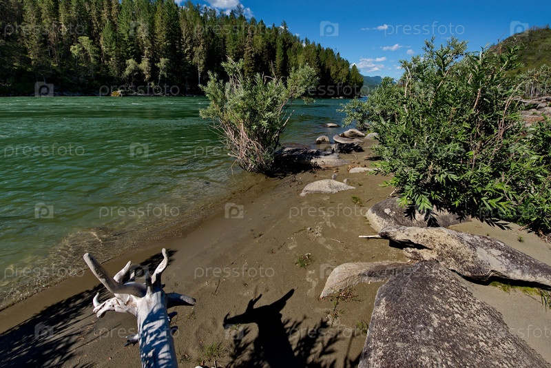 Россия. горный Алтай. Знаменитые «Катунские бани» — одно из самых любимых мест для купания и отдыха жителей Горного Алтая и туристов на реке Катунь