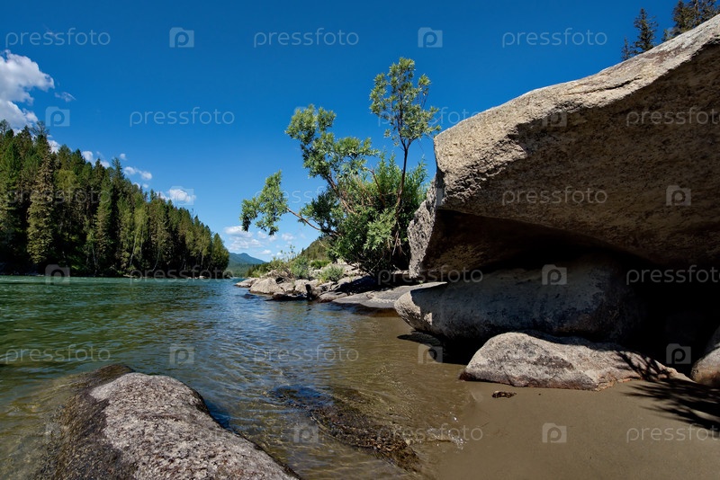 Россия. горный Алтай. Знаменитые «Катунские бани» — одно из самых любимых мест для купания и отдыха жителей Горного Алтая и туристов на реке Катунь
