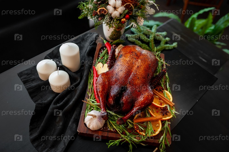 Традиционная праздничная еда на Рождество или День Благодарения. Индейка изолирована