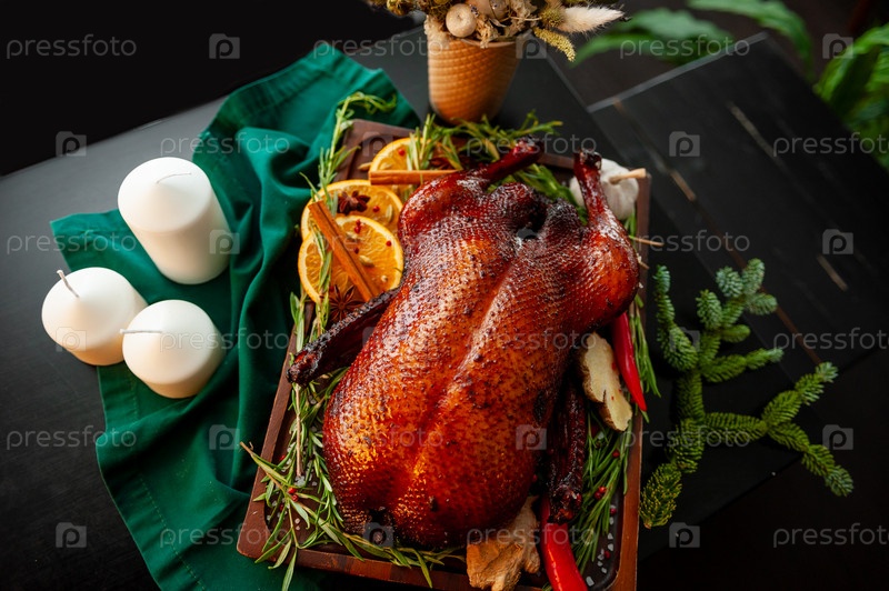 Традиционная праздничная еда на Рождество или День Благодарения. Индейка изолирована