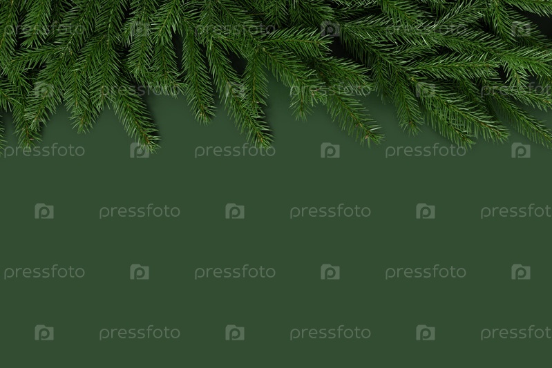 Рождественская граница с еловыми ветками. Рождественский зеленый фон с копией пространства. Новогодняя открытка. Вид сверху, плоская планировка