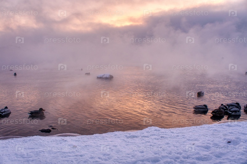 Морозное туманное утро над Енисеем