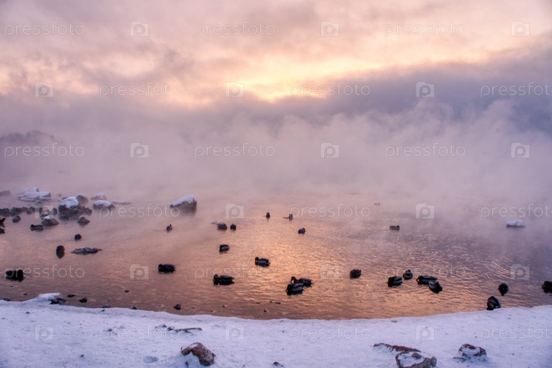 Морозное туманное утро над Енисеем
