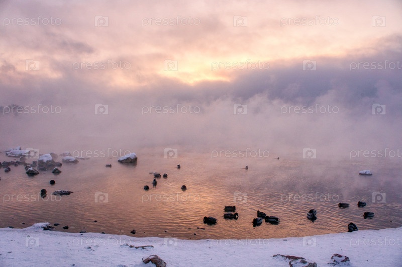 Морозное туманное утро над Енисеем