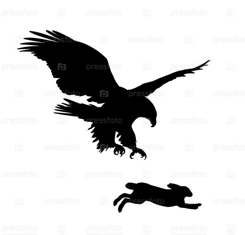Силуэт зайца и летящего орла