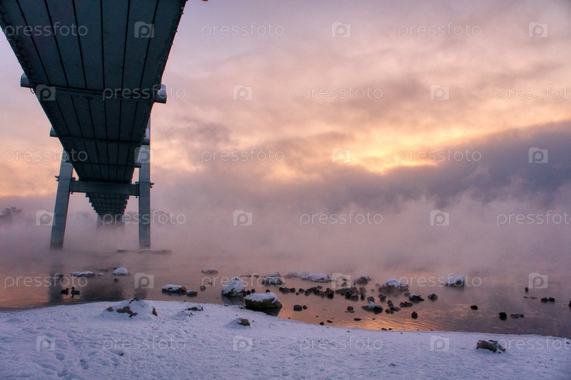 Морозное туманное утро над Енисеем