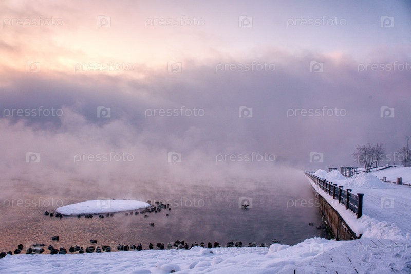 Морозное туманное утро над Енисеем