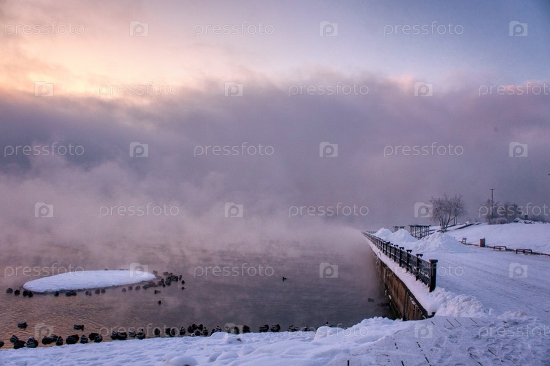 Морозное туманное утро над Енисеем