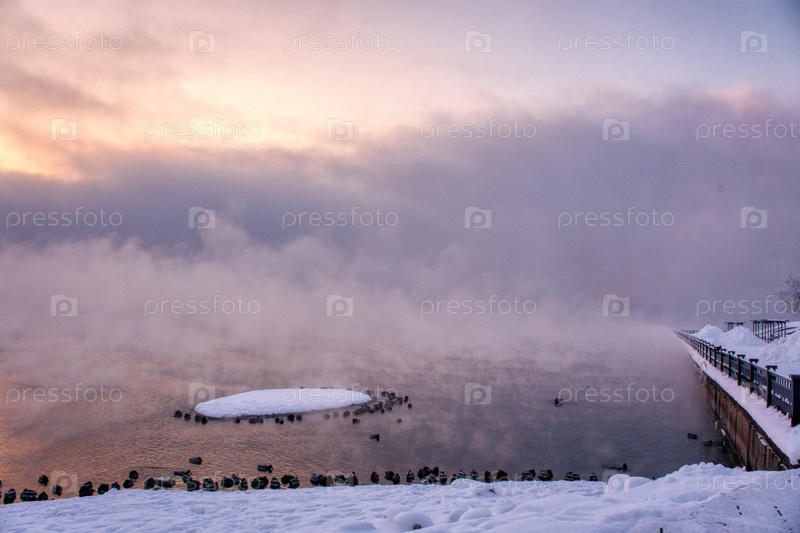 Морозное туманное утро над Енисеем