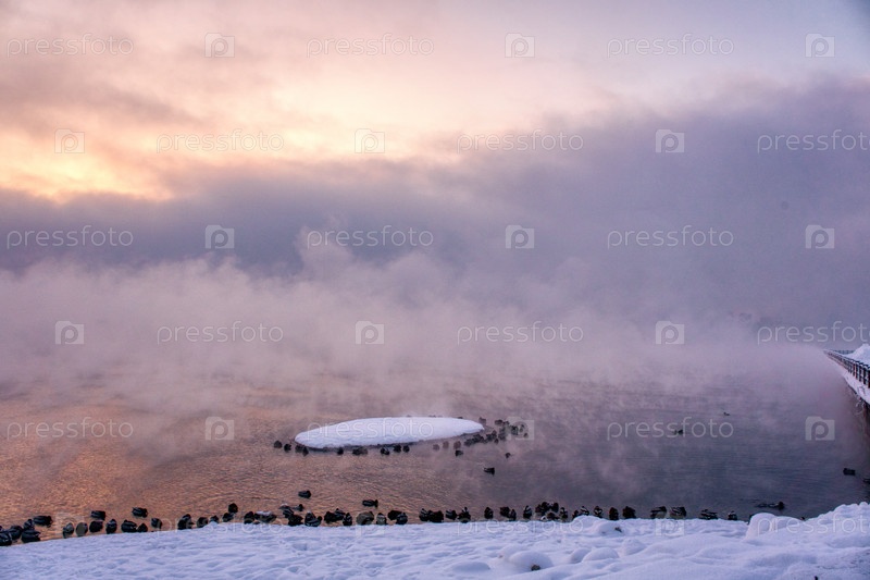 Морозное туманное утро над Енисеем