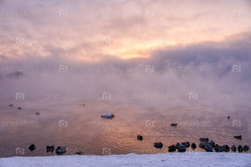 Морозное туманное утро над Енисеем