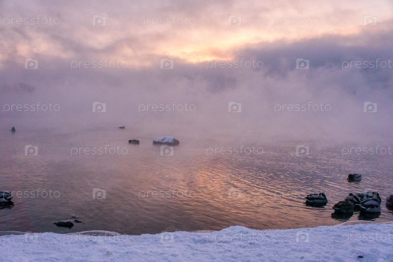 Морозное туманное утро над Енисеем
