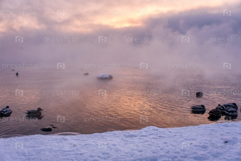Морозное туманное утро над Енисеем