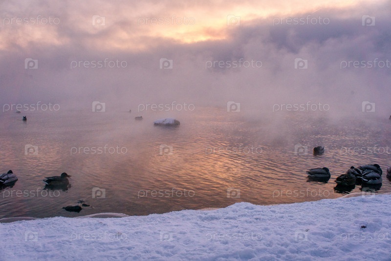 Морозное туманное утро над Енисеем
