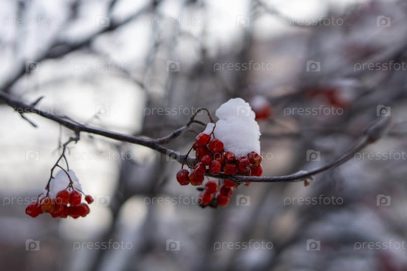 Заснеженная рябина на ветке