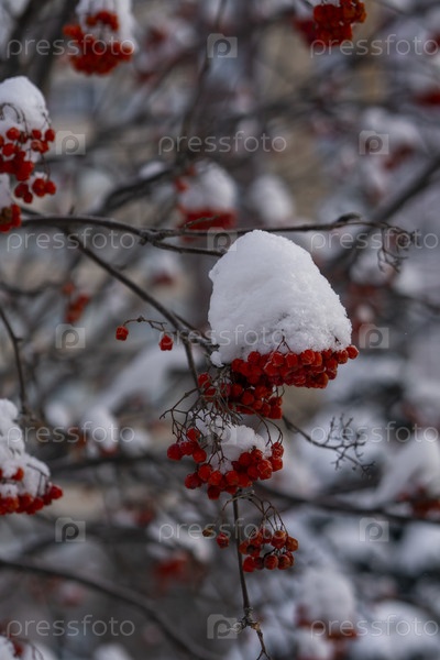 Заснеженная рябина на ветке