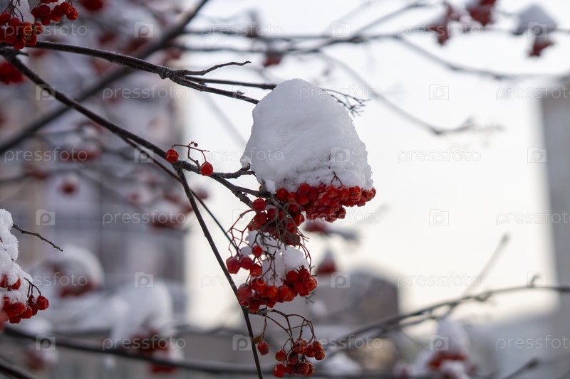 Заснеженная рябина на ветке
