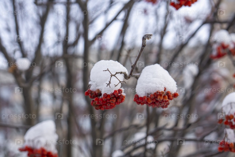 Заснеженная рябина на ветке