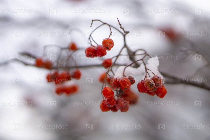 Заснеженная рябина на ветке