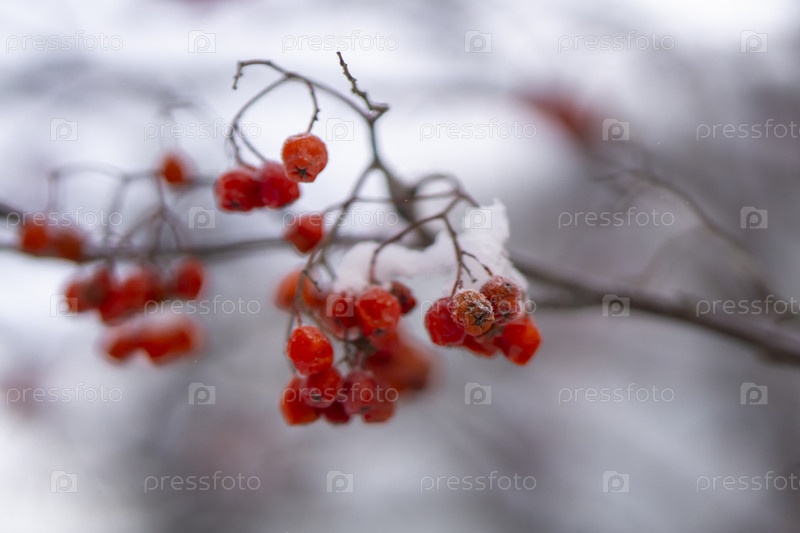 Заснеженная рябина на ветке