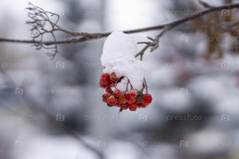 Заснеженная рябина на ветке