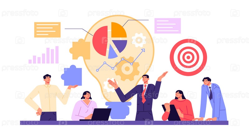 Бизнес-команда встречается вместе и обсуждает цели и показатели