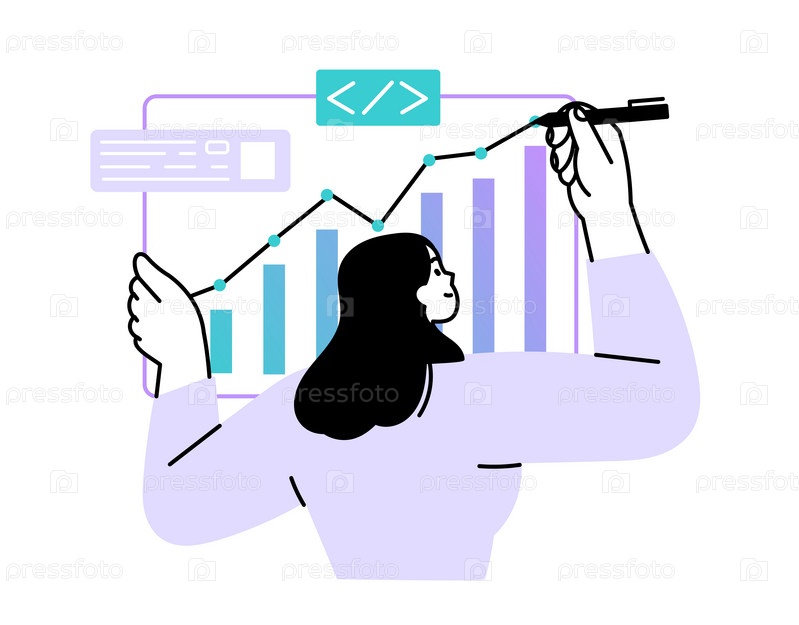 Женщина рисует график, планы и прогнозы