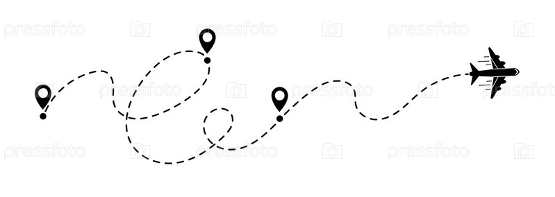 Маршрут полета самолета. Векторная иллюстрация самолета