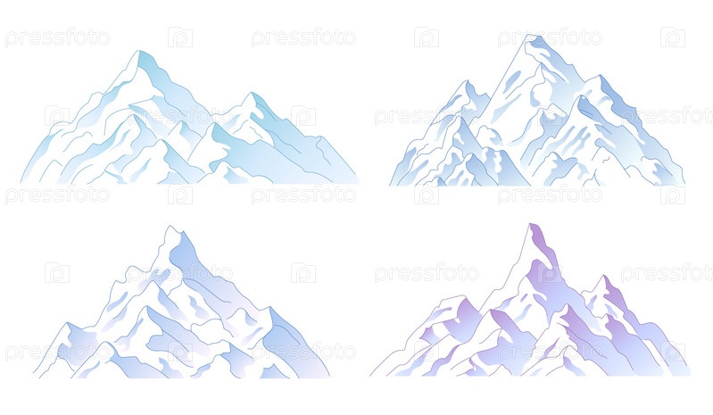 Горы скалистые вершины установлены. Векторная иллюстрация