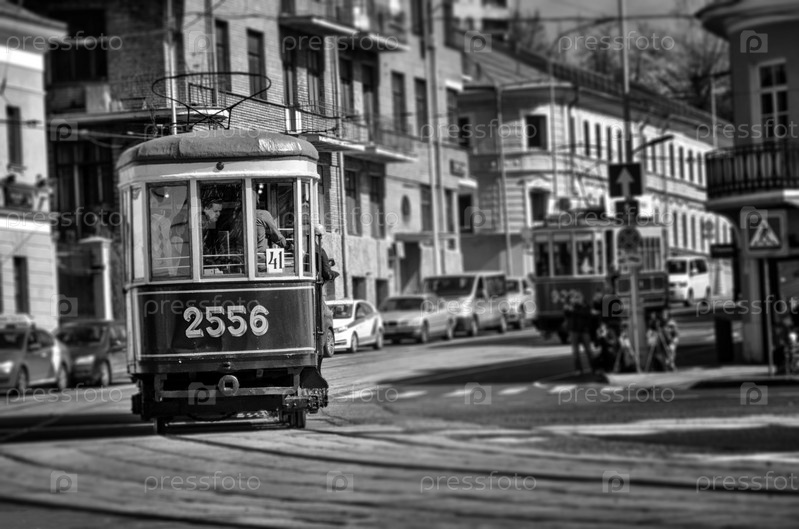 МОСКВА, РОССИЯ - 21 апреля 2018 года: Традиционный парад трамваев в Москве в винтажном стиле для журналов