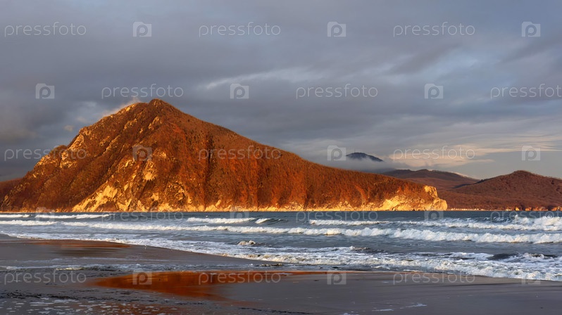 Морской пейзаж с видом на холм Сестра. Находка, Россия
