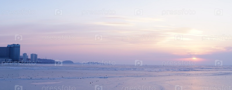 Зимний пейзаж в Амурском заливе. Владивосток, Россия