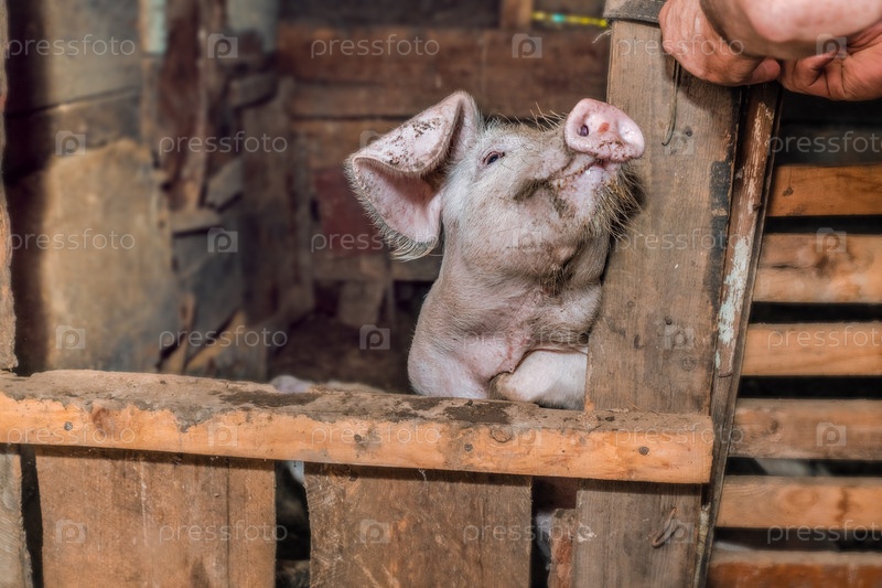 Мужчина открывает дверь в свинарник