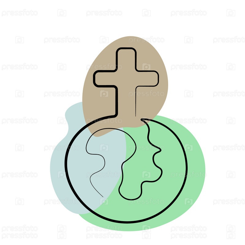 Христианская икона Крест и Земля в одной цветной линии