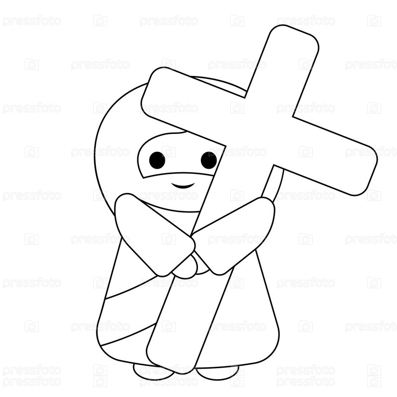 Милый Бог Иисус Христос держит крест в черно-белом цвете