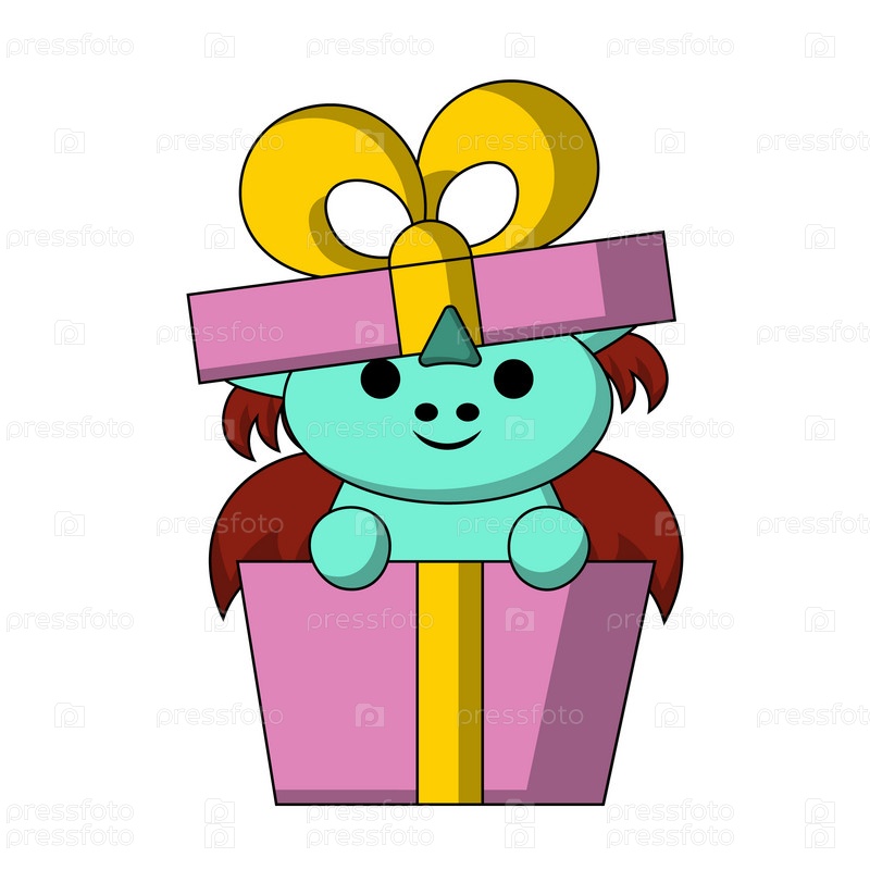 Милый мультяшный дракон в праздничной подарочной коробке в цвете