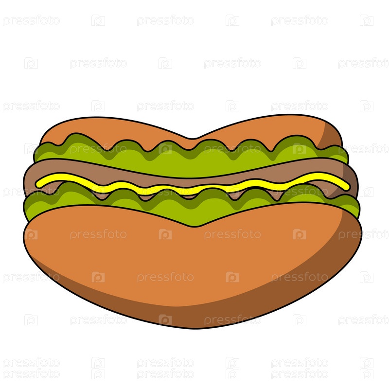 Мультяшный хот-дог в форме сердца в цвете
