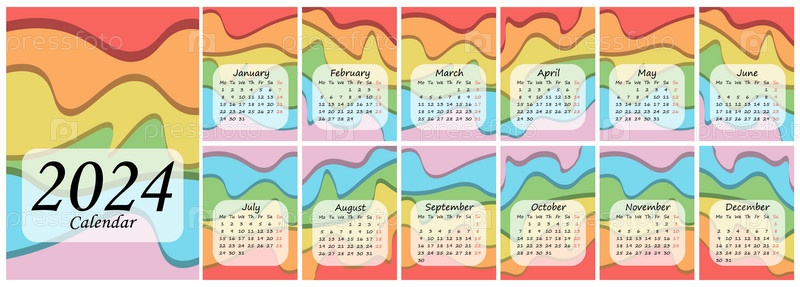 Календарь на 2024 год с радужным абстрактным фоном