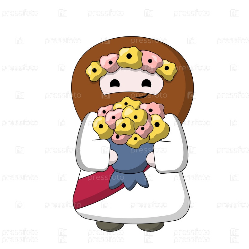 Милый Бог Иисус Христос с цветным букетом