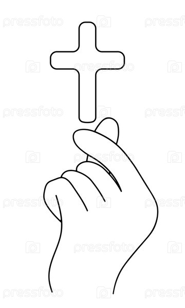 Сердце жеста пальцев с крестом в черно-белом цвете
