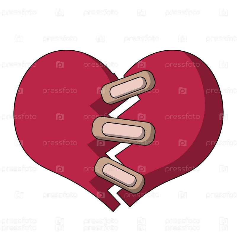 Разбитое сердце, соединенное нитями, клейкий пластырь в цвете