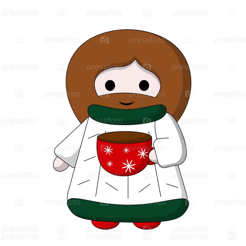 Милый Бог Иисус Христос с чашкой и свитером в цвете