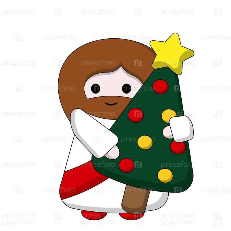 Милый Бог Иисус Христос держит Рождественскую елку в цвете