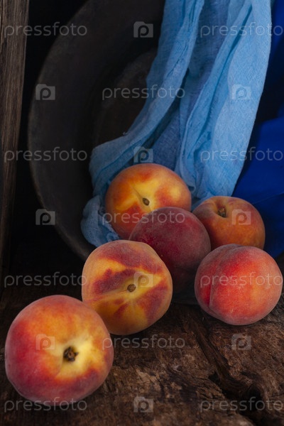 Группа свежих персиков на деревянном столе