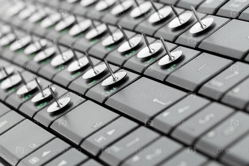 Кнопки на клавишах компьютерной клавиатуры. Малая глубина резкости макросъемки