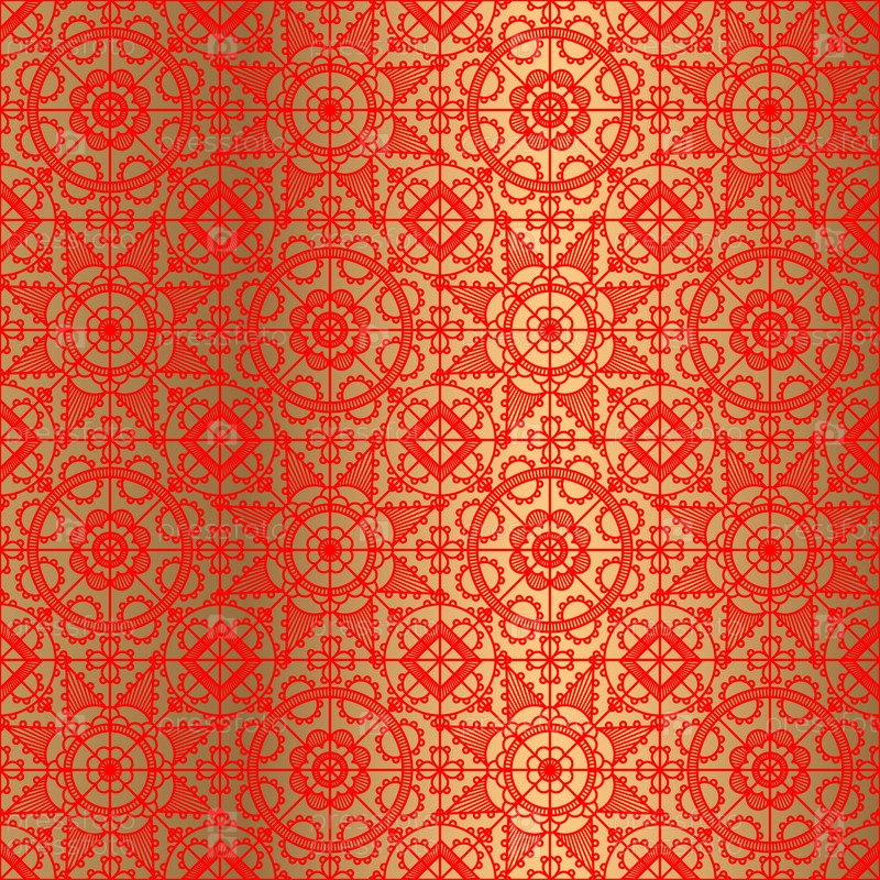 Кружевной красный паттерн на золотом фоне
