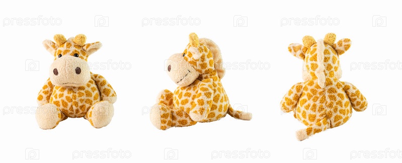 Мягкая игрушка сидячий жираф в трех видах: спереди, сбоку и сзади