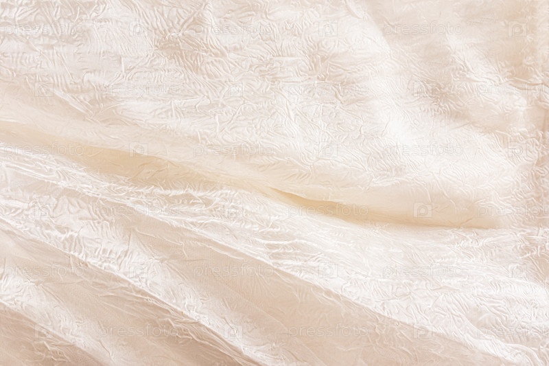 Красивые мягкие складки, драпировочная фабричная ткань бежевого цвета, абстрактная ткань с набивным рисунком. Свадебный, праздничный фон. Копия помещения
