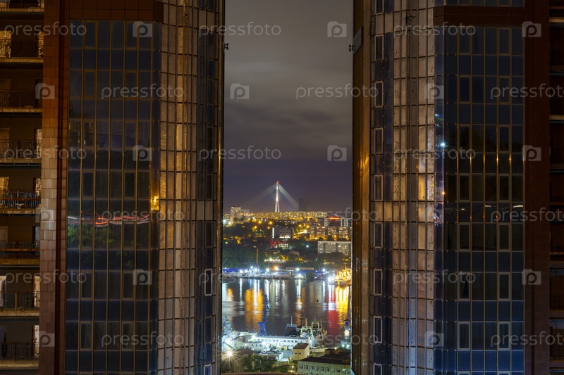 Ночной пейзаж с видом на бухту Золотой Рог. Владивосток, Россия